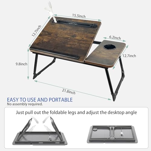 Laptop Desk for Bed, Laptop Bed Tray Desk with 5 Different Angles, Foldable Laptop Bed Table with USB Charge Port and Cup Holder for Writing Working (Rustic Brown)